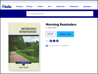 If you see a title on our website that you wish to purchase, look for the section entitled Buy at Lulu at the bottom of each title's product page. Here you will find a list of all the available formats for the selected title: